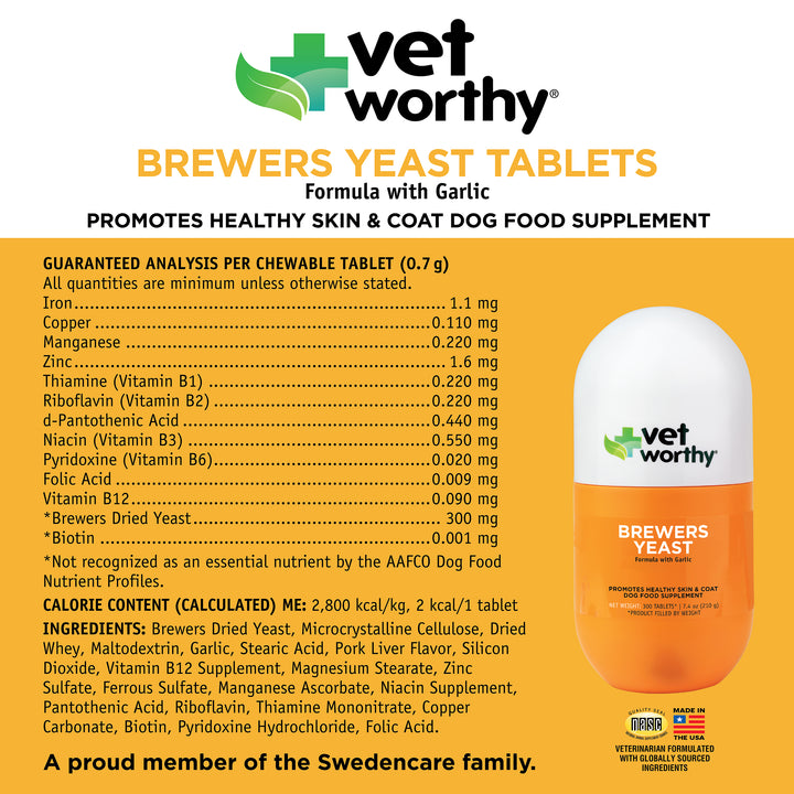 Recommended to support healthy skin and coat in dogs. This veterinarian formulation is made with garlic and is an enticing flavored chewable tablet your dog will love.