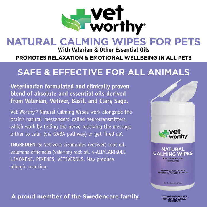 Wipe away your pet’s everyday anxiety with the Pet Remedy Calming Wipes for Cats & Dogs from Vet Worthy! Featuring a clinically proven blend of valerian, vetiver and calming essential oils, these convenient wipes help your pets produce neurotransmitters that can calm their nerves in stressful situations. Its pH neutral formula is ideal for use around all birds and mammals, including rabbits, rodents and horses. Plus, they can be used on-the-go, as their effects start instantly and last for 2-6 hours after application.