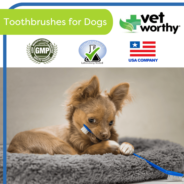 Recommended to help maintain clean teeth and gum health. These brushes have and angled head to reach every tooth with two style bristle heads on each brush. These brushes are specially designed for dogs.