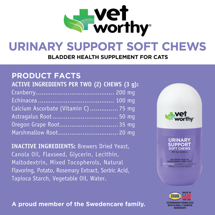 Recommended for urinary tract support helping promote proper urine and mineral balance and maintain normal bladder health and control. This veterinarian formulation is an enticing chicken liver flavored soft chew your cat will love.